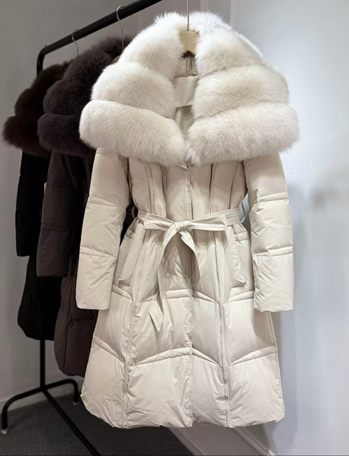 Wrap yourself in refined luxury this winter with our Fox Fur Collar Down Coat, designed for the modern woman who values both elegance and comfort. Crafted with 90% premium duck down, this jacket offers exceptional warmth while maintaining a lightweight, flattering fit.
