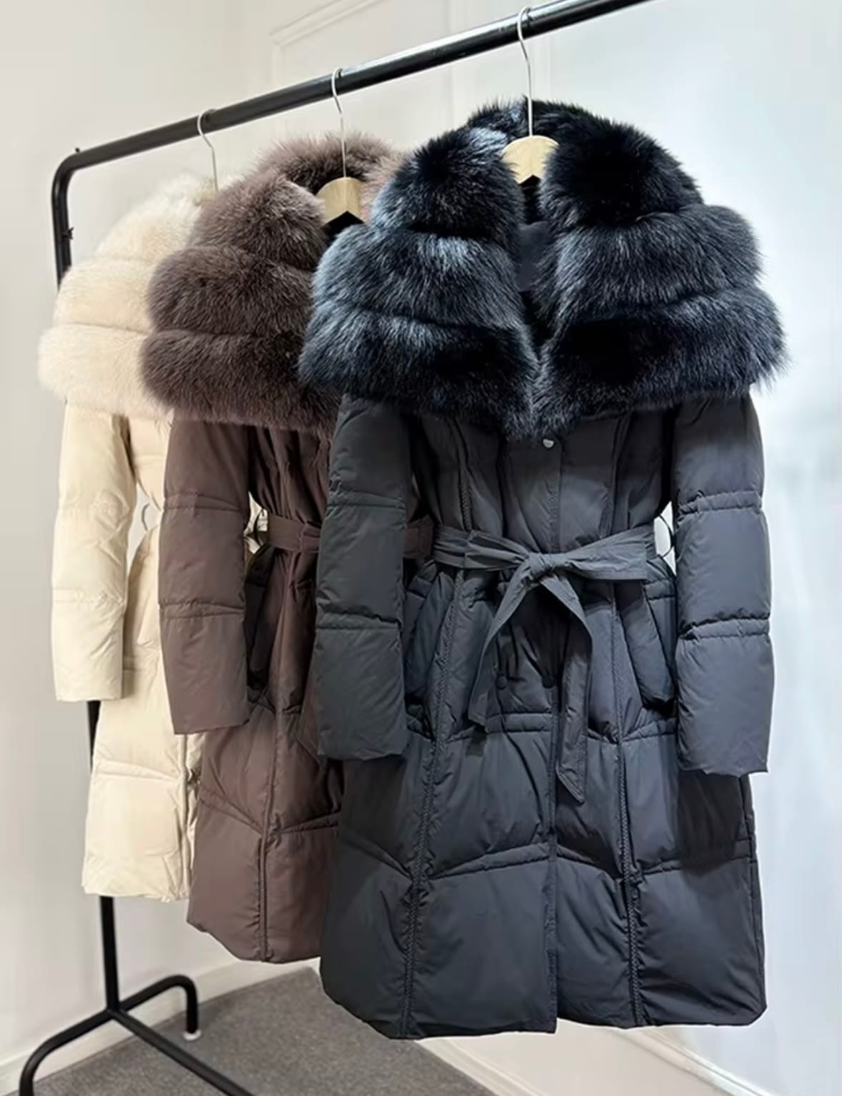 ‘Sapphire ’ Fox Fur Collared long Puffer Jacket